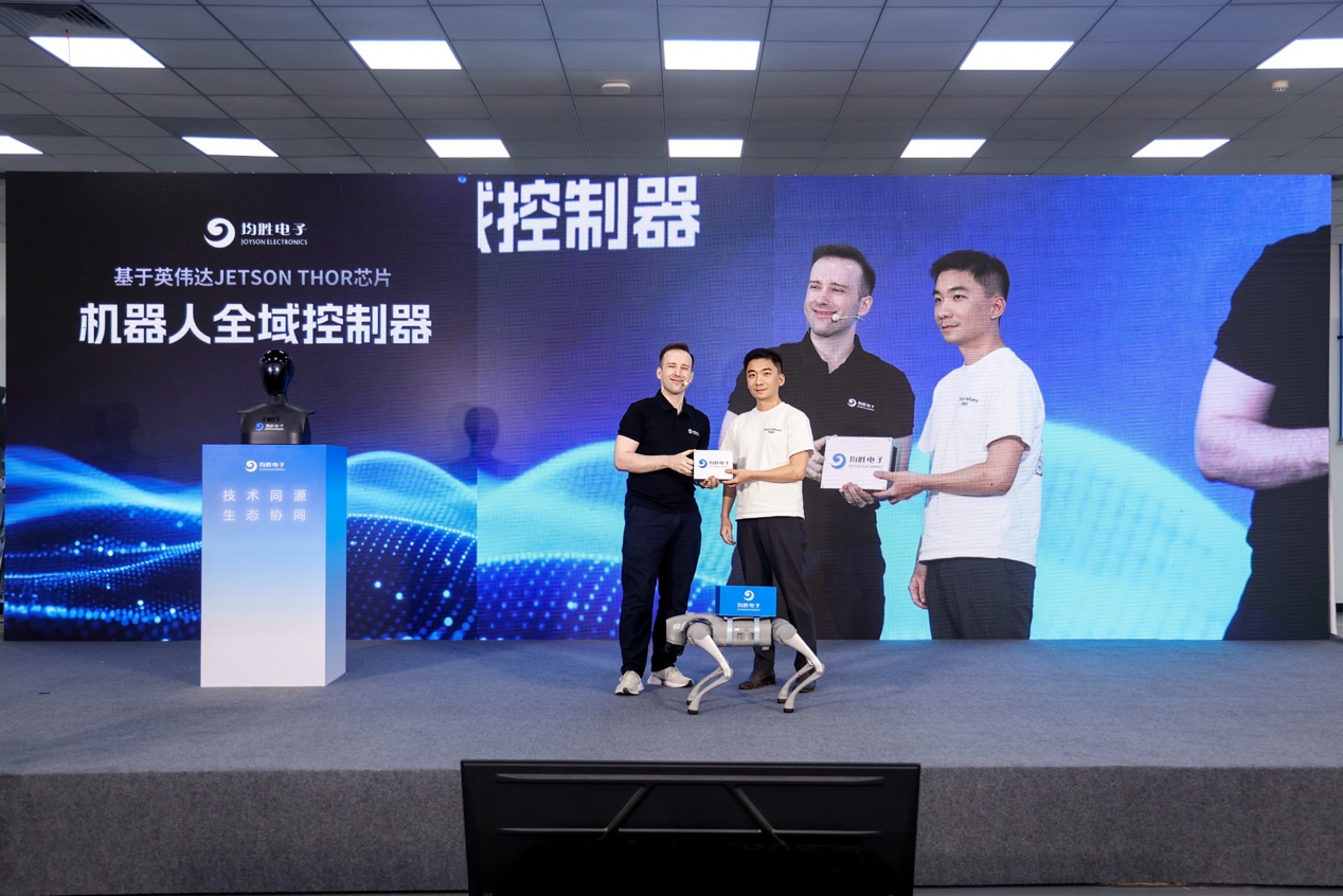 除了机器人外在的头脑,此次发布会,均胜电子还发布了能够控制机器人全身的内在“超级大脑”——基于英伟达Jetson Thor芯片的全域控制器。