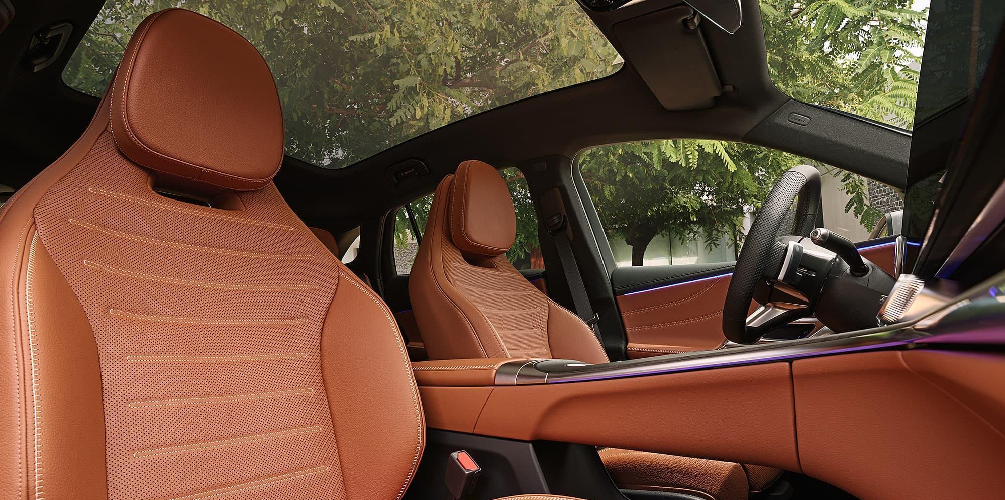 全新纯电GLC标配带有红外反射涂层与Low-E低辐射镀膜的隔热夹层玻璃天幕天盈配,可有效降低阳光下的升温与寒冷中的热量流失。升级选配后,天幕被分为9个可调节分区,用户可自由切换透明或不透明,实现对车内采光的个性化控制。