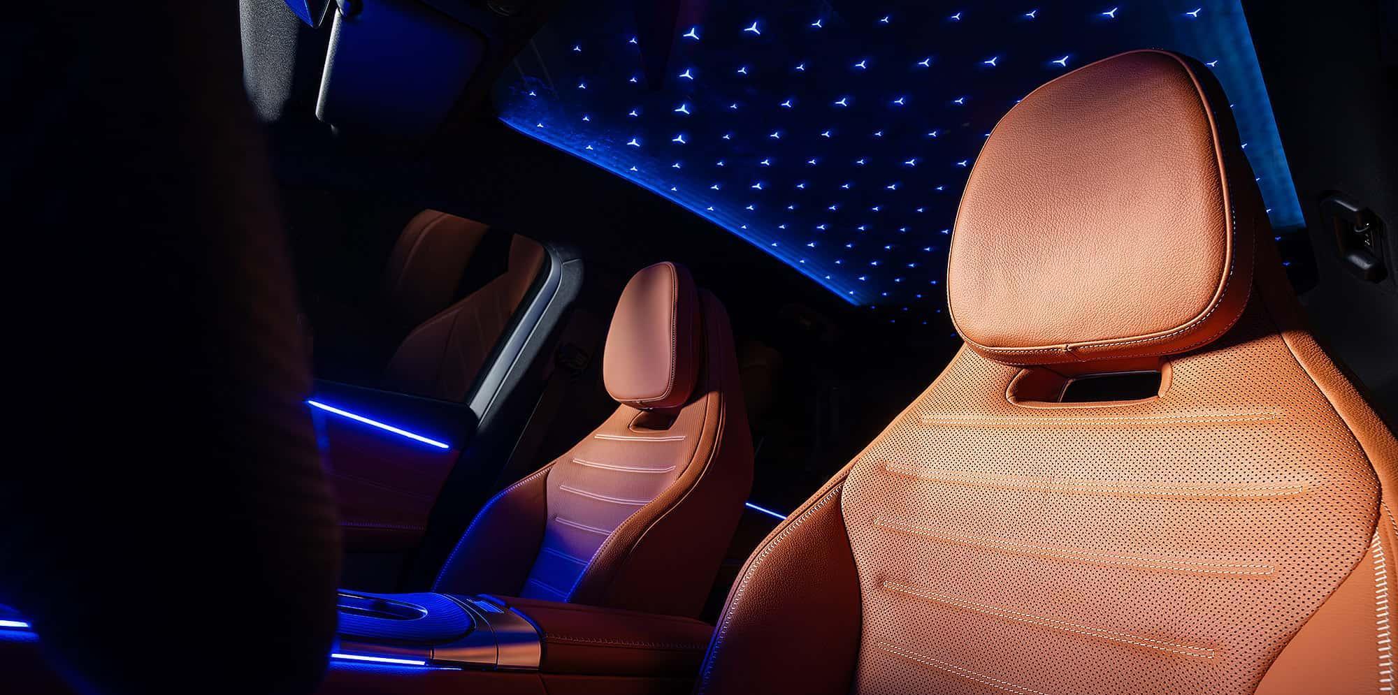 此外,还能选配星空顶效果:在夜间,162颗嵌入玻璃的发光星点点亮,可支持64种颜色或与车内氛围灯联动,带来极具浪漫感的观感。